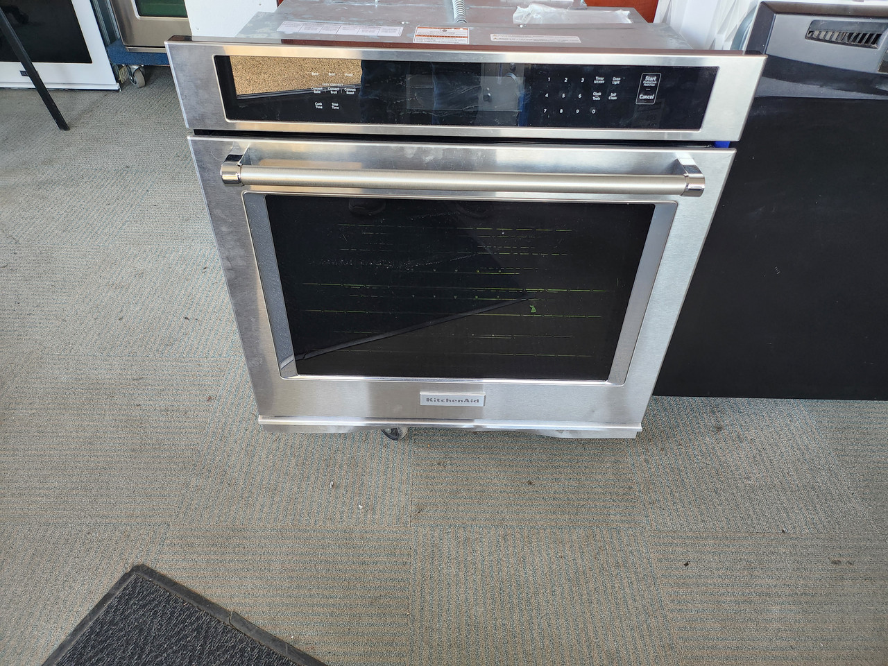 KitchenAid 30 Inch Single Convection Electric Wall Oven with 5 cu. ft. Capacity, Even-Heat True Convection Oven, Easy-Convect™ Conversion System, Self-Cleaning Cycle Stainless LOICATED IN OUR PORTLAND OREGON APPLIANCE SORE SKU 19945