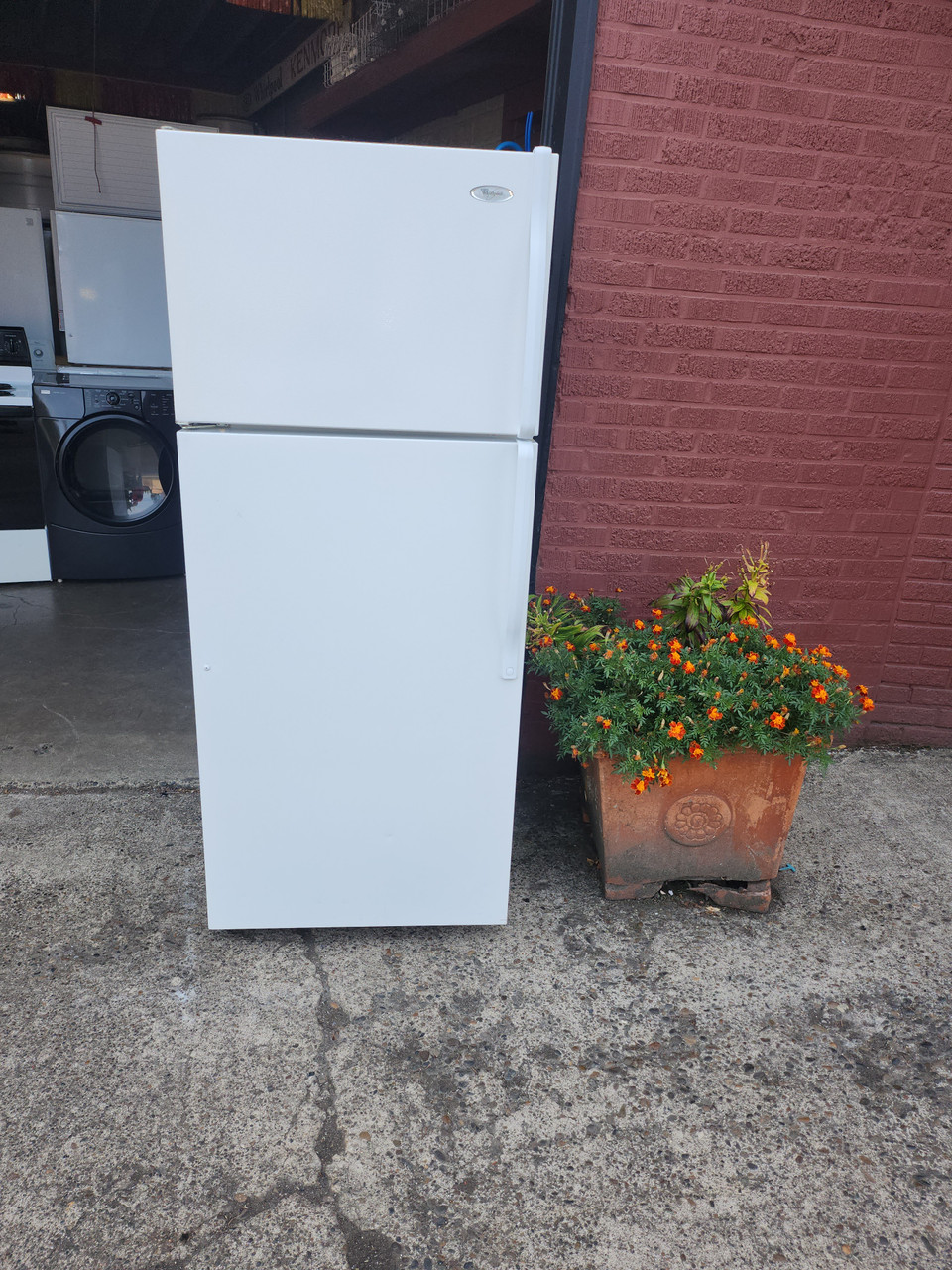 Whirlpool 17.6 cu. ft. Top-Freezer Refrigerator with ClearVue Crispers, Spill Mizer Glass Shelves and Automatic Defrost System: White LOCATED IN OUR PORTLAND OREGON APPLIANCE STORE SKU 19469