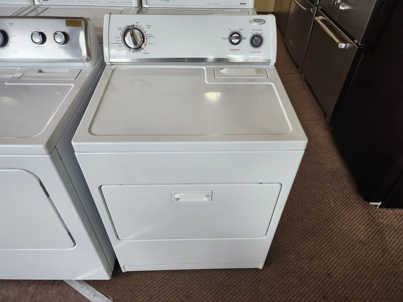 WHIRLPOOL 3 CYCLE ELECTRIC DRYER TIMED DRY AUTO DRY PLUS AIR DRY 4 TEMPERATURE SETTINGS TOP FILTER PULL DOWN HAMPER DOOR WHITE LOCATED IN OUR PORTLAND OREGON APPLIANCE STORE SKU 23025